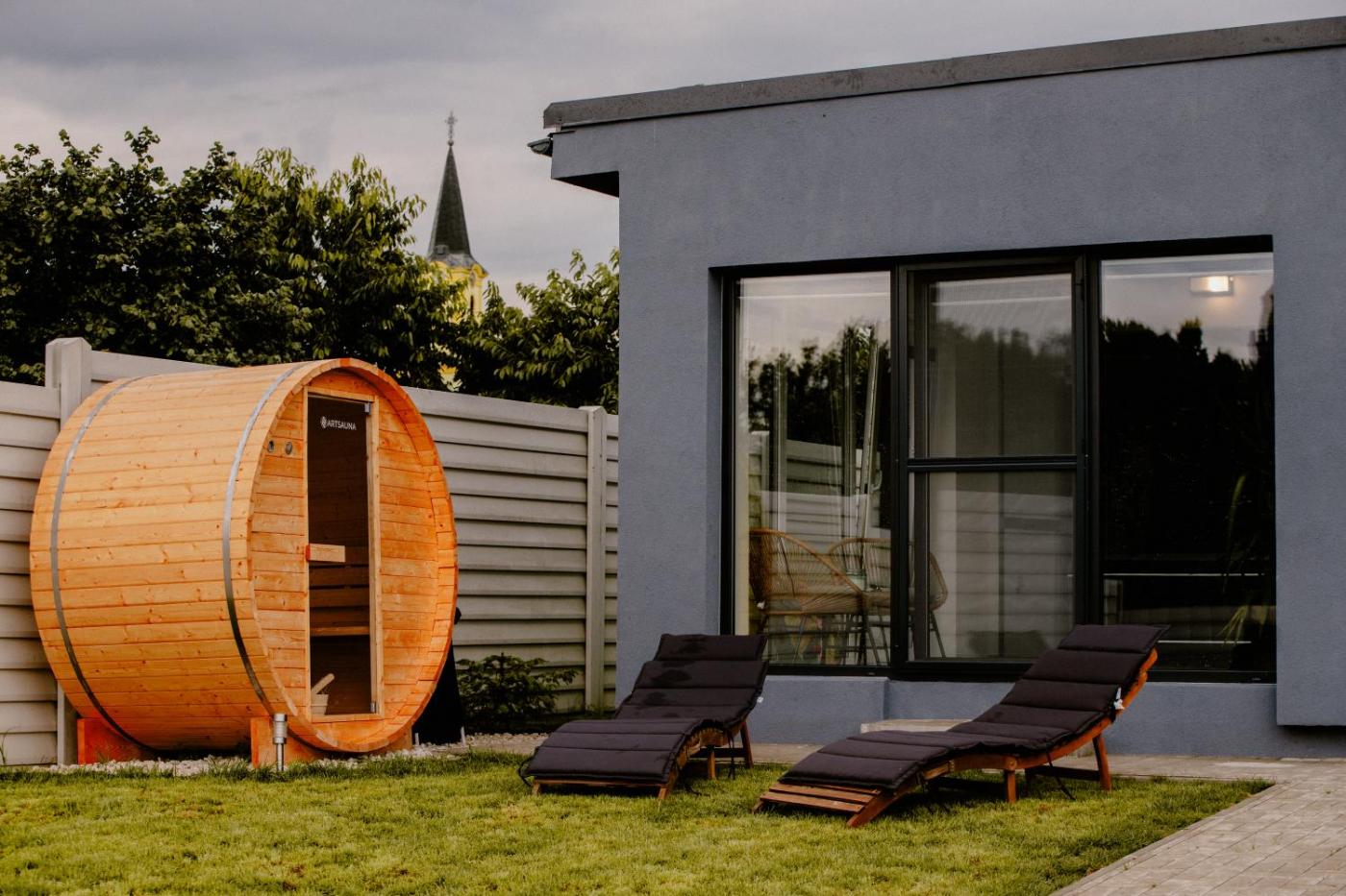 One-Bedroom House. The hot tub and sauna are the standout features of this holiday home. Meals can be prepared in the well-fitted kitchen, which features a refrigerator, a dishwasher, an oven and a microwave. The air-conditioned holiday home features a flat-screen TV with streaming services, a private entrance, a tea and coffee maker, a seating area as well as garden views. The unit has 2 beds.
